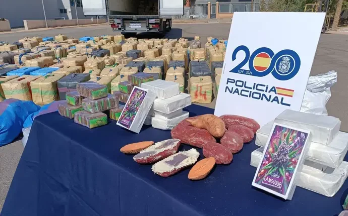 وتمكنت السلطات من حجز أكثر من 15.3 طناً من “الحشيش” تم إدخالها إلى إسبانيا عبر ميناء ألميريا في نهاية شهر يونيو الماضي، حيث كانت الشحنة مخبأة بإحكام داخل شاحنة مقطورة تحمل فواكه صيفية، بينها بطيخ و”بطاطا” مصنوعة من البلاستيك الصلب وملونة بطريقة تحاكي المظهر الحقيقي.