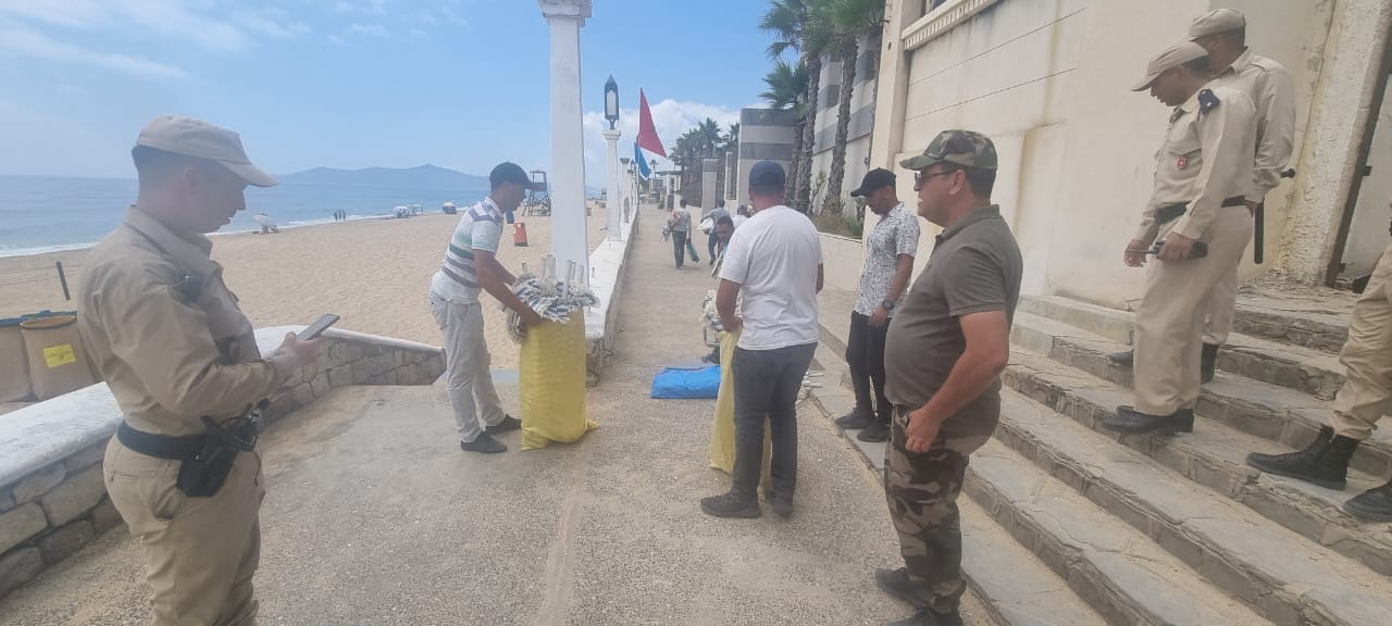 ولم تقتصر الحملة على محيط المركب السكني، بل امتدت إلى شاطئي مارينا بويرطو ومارينا سمير، حيث تم تنفيذ حملة تمشيطية لمحاربة الاحتلال غير القانوني للشواطئ. وأسفرت هذه التدخلات عن حجز عدد كبير من المظلات والكراسي التي تم نصبها بشكل عشوائي من قبل بعض المستغلين غير المرخصين، ما يُعد مساسًا بحق المصطافين في الاستفادة المجانية من الشواطئ العمومية.