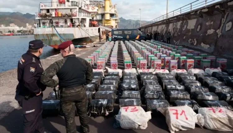 تمكنت الشرطة الوطنية الإسبانية، في أكبر عملية حجز للكوكايين في عرض البحر في تاريخها، من اعتراض سفينة شحن تجارية كانت تخفي ما مجموعه 9.994 كيلوغراما من المخدرات وسط حمولة من الملح، أثناء إبحارها في المحيط الأطلسي على بعد نحو 535 كيلومترا من جزر الكناري، قبالة السواحل المغربية.